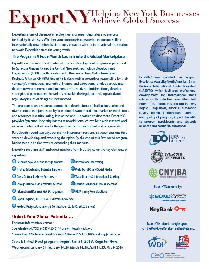 If you’ve taken informal mentoring as far as it can go, or know that the help you need requires a structured and formal approach, start with CNYIBA’s Consultation Program. For a nominal fee, or as part of the high-tier membership levels, CNYIBA’s Director will custom design an export consultation project to fit your needs.